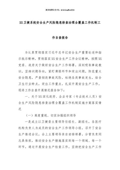 【七哥公文】2024年:XX卫健系统安全生产风险隐患排查治理全覆盖工作机制工作自查报告+更多免费公文+VX:QiGeGongWen2024