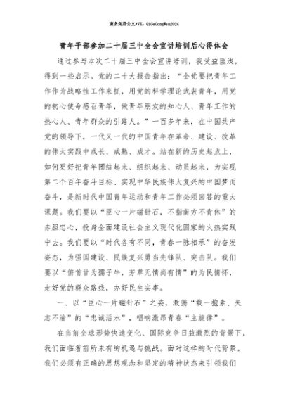 / 【七哥公文】2024年:青年干部参加二十届三中全会宣讲培训后心得体会+更多免费公文+VX:QiGeGongWen2024