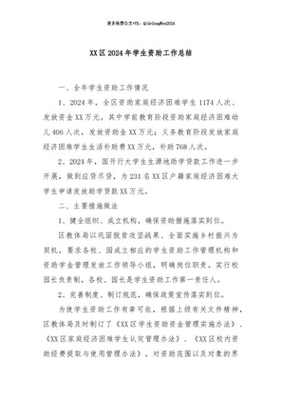 / 【七哥公文】2024年:XX区2024年学生资助工作总结+更多免费公文+VX:QiGeGongWen2024
