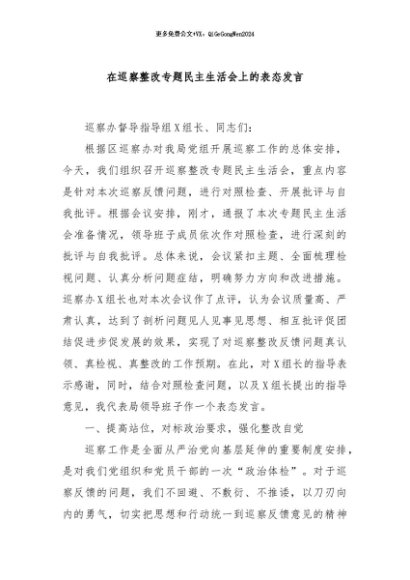 / 【七哥公文】2024年:在巡察整改专题民主生活会上的表态发言+更多免费公文+VX:QiGeGongWen2024