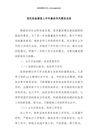 / 【七哥公文】2024年:某纪检监察室上半年廉政作风建设总结+更多免费公文+VX:QiGeGongWen2024