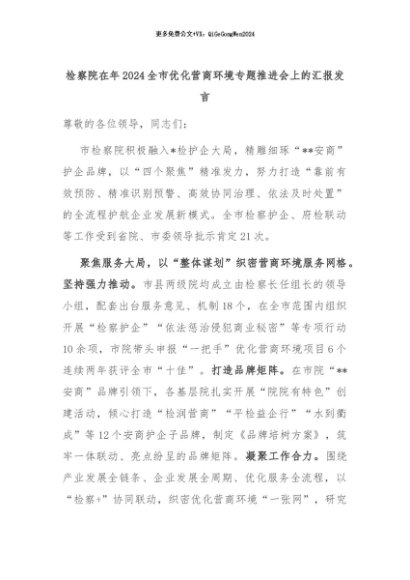 【七哥公文】2024年:检察院在年2024全市优化营商环境专题推进会上的汇报发言+更多免费公文+VX:QiGeGongWen2024