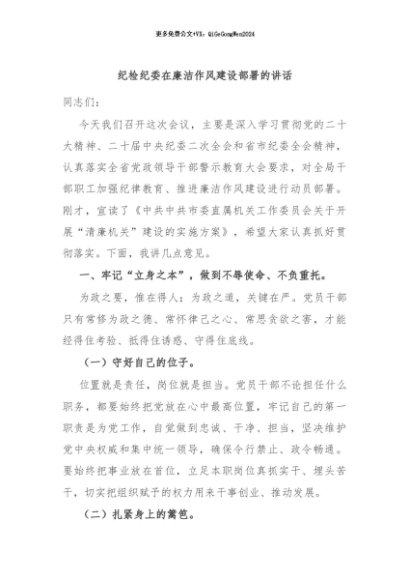 / 【七哥公文】2024年:纪检纪委在廉洁作风建设部署的讲话+更多免费公文+VX:QiGeGongWen2024
