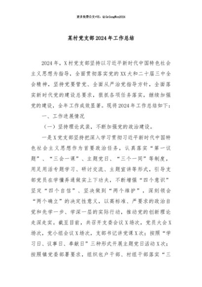 / 【七哥公文】2024年:某村党支部2024年工作总结+更多免费公文+VX:QiGeGongWen2024