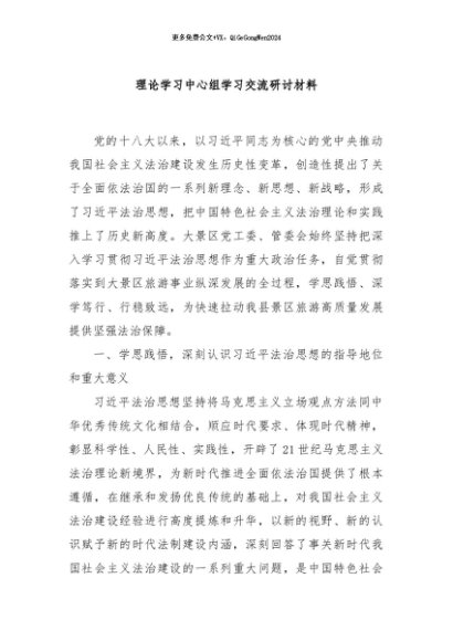 / 【七哥公文】2024年:理论学习中心组学习交流研讨材料+更多免费公文+VX:QiGeGongWen2024