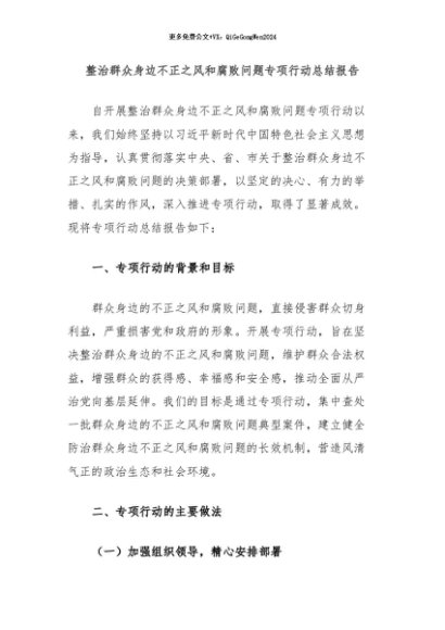 / 【七哥公文】2024年:整治群众身边不正之风和腐败问题专项行动总结报告+更多免费公文+VX:QiGeGongWen2024