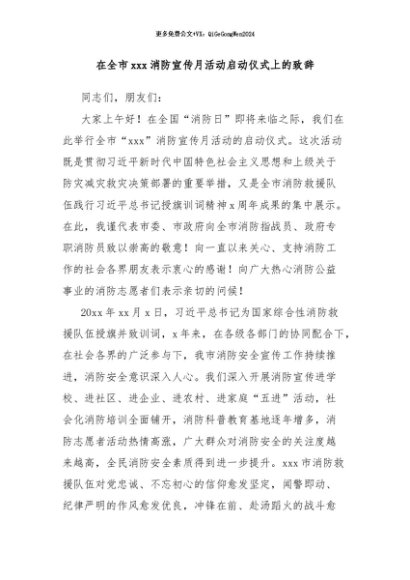 / 【七哥公文】2024年:在全市xxx消防宣传月活动启动仪式上的致辞+更多免费公文+VX:QiGeGongWen2024