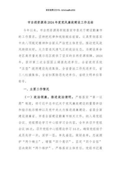 / 【七哥公文】2024年:市自然资源局2024年度党风廉政建设工作总结+更多免费公文+VX:QiGeGongWen2024