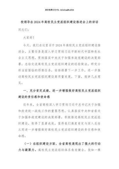 【七哥公文】2024年:校领导在2024年高校民主党派组织建设推进会上的讲话+更多免费公文+VX:QiGeGongWen2024