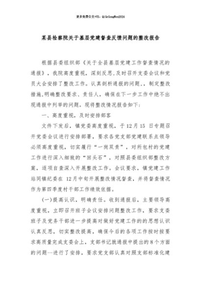 / 【七哥公文】2024年:某县检察院关于基层党建督查反馈问题的整改报告+更多免费公文+VX:QiGeGongWen2024