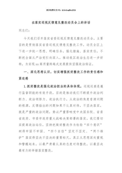/ 【七哥公文】2024年:在落实巡视反馈意见整改动员会上的讲话+更多免费公文+VX:QiGeGongWen2024
