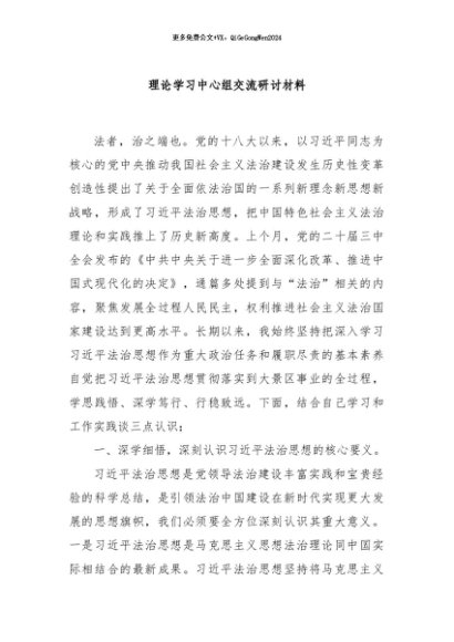 / 【七哥公文】2024年:理论学习中心组交流研讨材料+更多免费公文+VX:QiGeGongWen2024