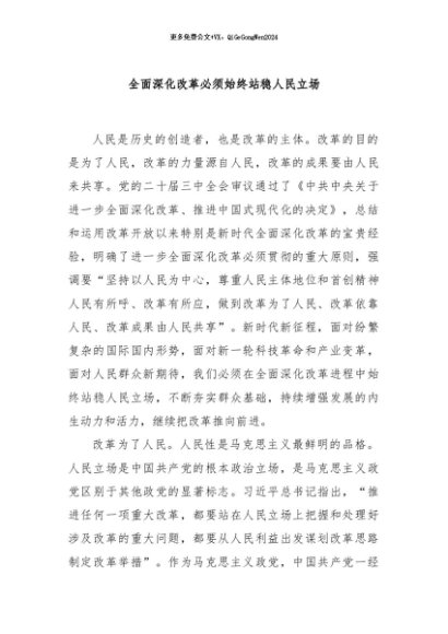【七哥公文】2024年:全面深化改革必须始终站稳人民立场+更多免费公文+VX:QiGeGongWen2024