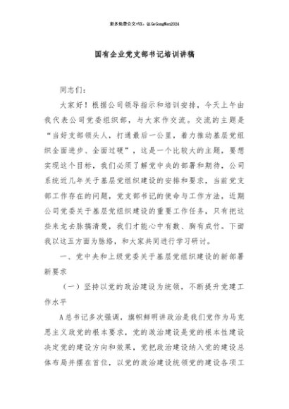/ 【七哥公文】2024年:国有企业党支部书记培训讲稿+更多免费公文+VX:QiGeGongWen2024