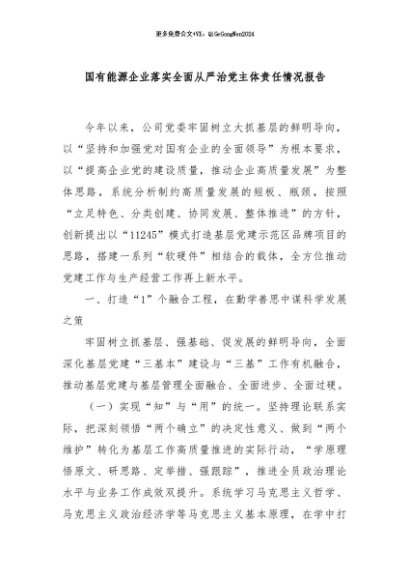 / 【七哥公文】2024年:国有能源企业落实全面从严治党主体责任情况报告+更多免费公文+VX:QiGeGongWen2024