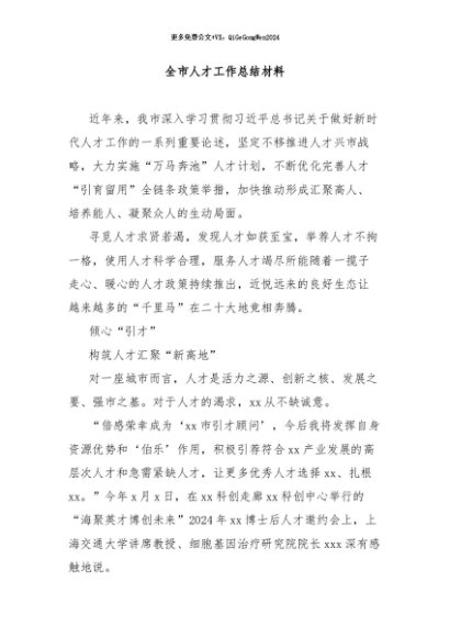 / 【七哥公文】2024年:全市人才工作总结材料+更多免费公文+VX:QiGeGongWen2024