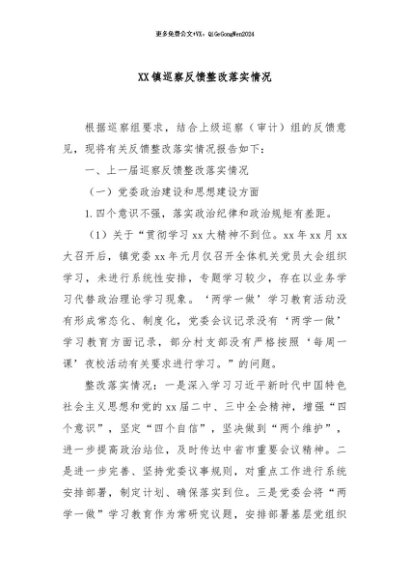 / 【七哥公文】2024年:XX镇巡察反馈整改落实情况+更多免费公文+VX:QiGeGongWen2024