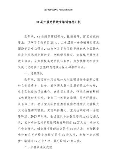 / 【七哥公文】2024年:XX县开展党员教育培训情况汇报+更多免费公文+VX:QiGeGongWen2024