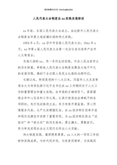 【七哥公文】2024年:人民代表大会制度在xx实践发展综述+更多免费公文+VX:QiGeGongWen2024