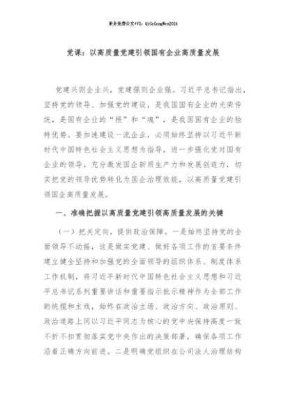 / 【七哥公文】2024年:党课:以高质量党建引领国有企业高质量发展+更多免费公文+VX:QiGeGongWen2024