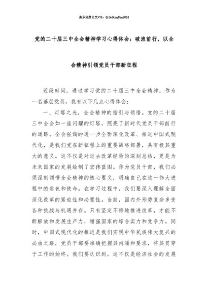 【七哥公文】2024年:党的二十届三中全会精神学习心得体会:破浪前行,以全会精神引领党员干部新征程+更多免费公文+VX:QiGeGongWen2024