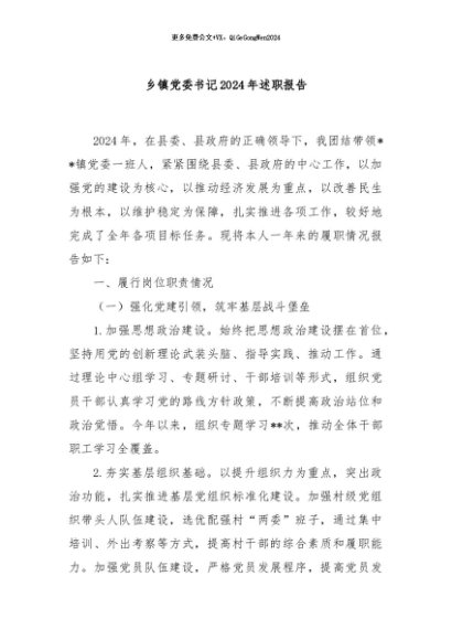 / 【七哥公文】2024年:乡镇党委书记2024年述职报告+更多免费公文+VX:QiGeGongWen2024