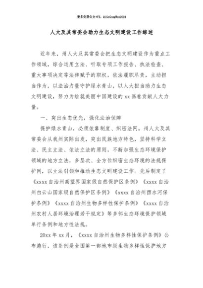 / 【七哥公文】2024年:人大及其常委会助力生态文明建设工作综述+更多免费公文+VX:QiGeGongWen2024