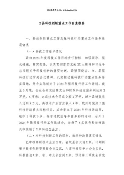 / 【七哥公文】2024年:X县科技创新重点工作自查报告+更多免费公文+VX:QiGeGongWen2024