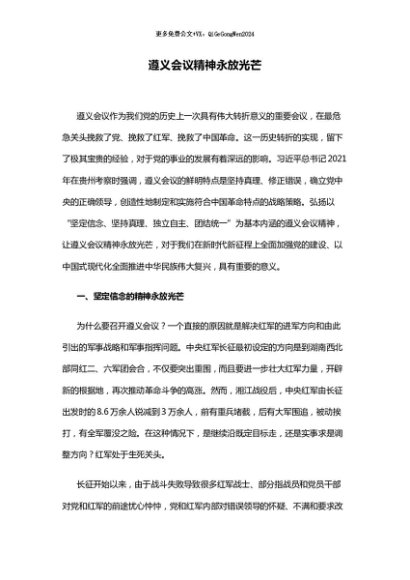 【七哥公文】2024年:红色大气遵义会议精神永放光芒党史学习教育党课PPT课件(讲稿)+更多免费公文+VX:QiGeGongWen2024