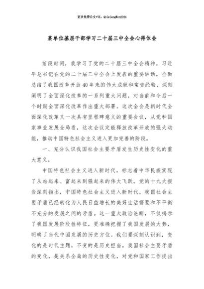 / 【七哥公文】2024年:某单位基层干部学习二十届三中全会心得体会(1)+更多免费公文+VX:QiGeGongWen2024