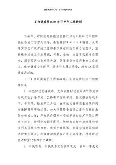 / 【七哥公文】2024年:某市财政局2024年下半年工作计划+更多免费公文+VX:QiGeGongWen2024