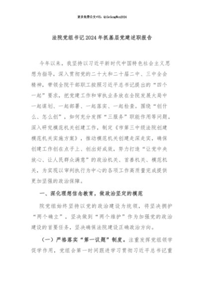 / 【七哥公文】2024年:法院党组书记2024年抓基层党建述职报告+更多免费公文+VX:QiGeGongWen2024