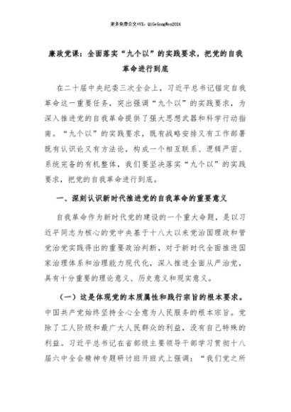 【七哥公文】2024年:廉政党课:全面落实“九个以”的实践要求,把党的自我革命进行到底+更多免费公文+VX:QiGeGongWen2024
