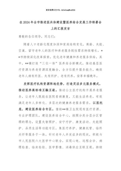 【七哥公文】2024年:在2024年全市推进医共体建设暨医养结合发展工作部署会上的汇报发言+更多免费公文+VX:QiGeGongWen2024