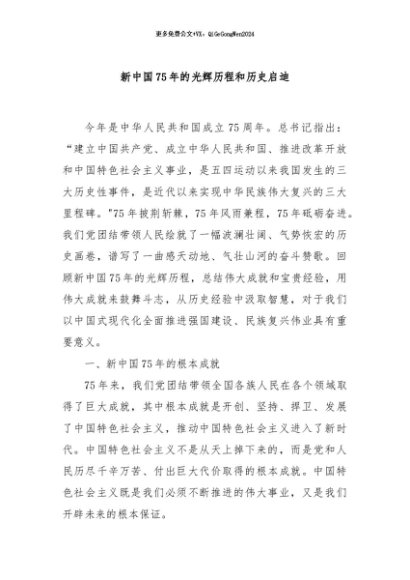 / 【七哥公文】2024年:新中国75年的光辉历程和历史启迪+更多免费公文+VX:QiGeGongWen2024