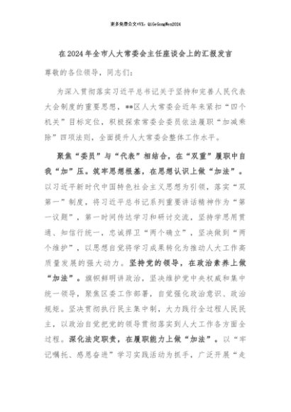 / 【七哥公文】2024年:在2024年全市人大常委会主任座谈会上的汇报发言+更多免费公文+VX:QiGeGongWen2024