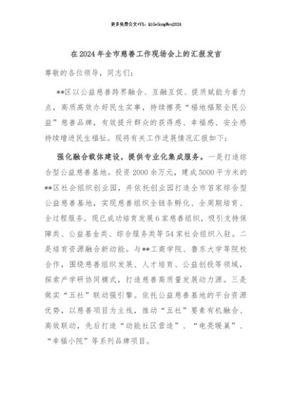 / 【七哥公文】2024年:在2024年全市慈善工作现场会上的汇报发言+更多免费公文+VX:QiGeGongWen2024