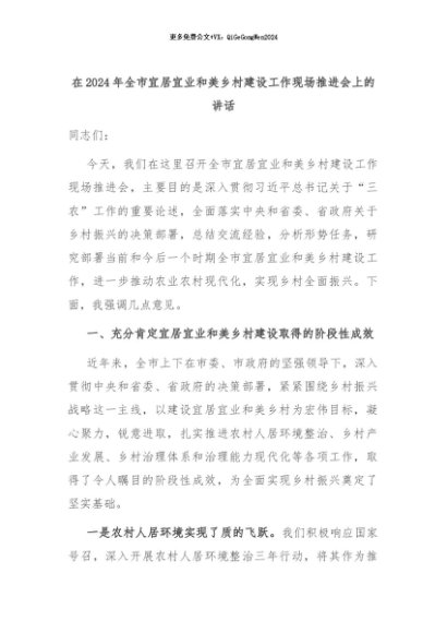 【七哥公文】2024年:在2024年全市宜居宜业和美乡村建设工作现场推进会上的讲话+更多免费公文+VX:QiGeGongWen2024