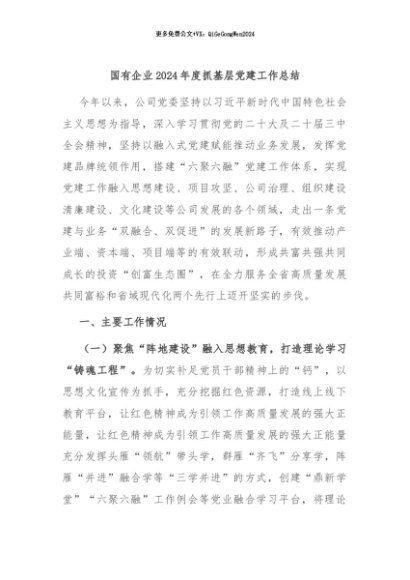 / 【七哥公文】2024年:国有企业2024年度抓基层党建工作总结+更多免费公文+VX:QiGeGongWen2024