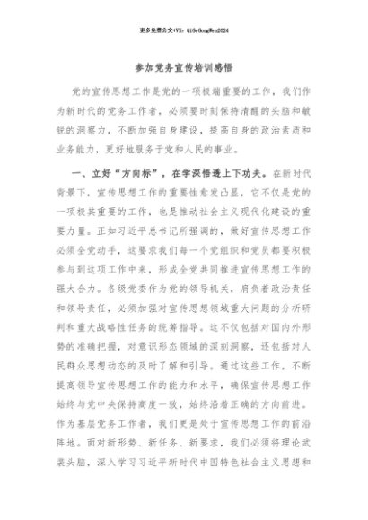 / 【七哥公文】2024年:参加党务宣传培训感悟+更多免费公文+VX:QiGeGongWen2024