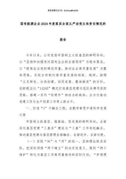 【七哥公文】2024年:国有能源企业2024年度落实全面从严治党主体责任情况的报告+更多免费公文+VX:QiGeGongWen2024