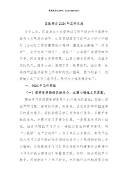 / 【七哥公文】2024年:区政府办2024年工作总结+更多免费公文+VX:QiGeGongWen2024