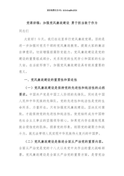 / 【七哥公文】2024年:党课讲稿:加强党风廉政建设 勇于担当敢于作为+更多免费公文+VX:QiGeGongWen2024