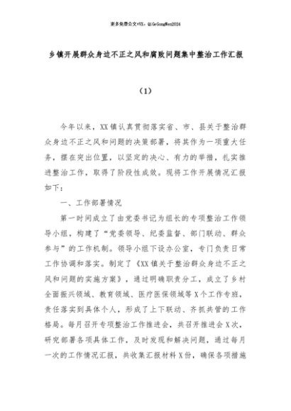 【七哥公文】2024年:乡镇开展群众身边不正之风和腐败问题集中整治工作汇报(1)+更多免费公文+VX:QiGeGongWen2024