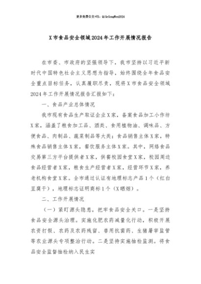 / 【七哥公文】2024年:X市食品安全领域2024年工作开展情况报告+更多免费公文+VX:QiGeGongWen2024