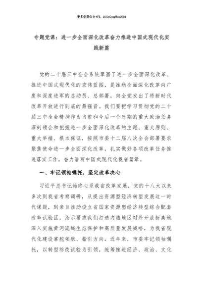 【七哥公文】2024年:专题党课:进一步全面深化改革奋力推进中国式现代化实践新篇+更多免费公文+VX:QiGeGongWen2024