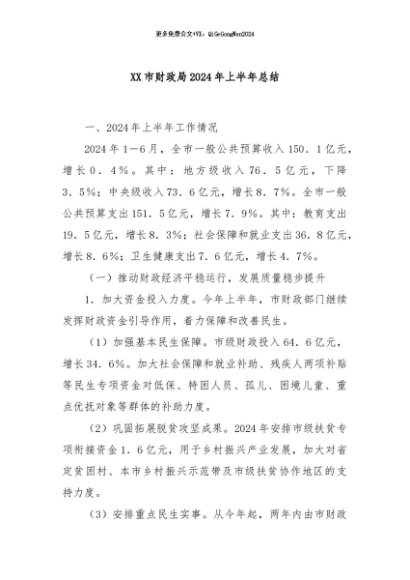 / 【七哥公文】2024年:XX市财政局2024年上半年总结+更多免费公文+VX:QiGeGongWen2024