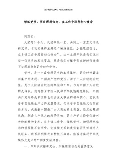 / 【七哥公文】2024年:锤炼党性,坚定理想信念,在工作中践行初心使命+更多免费公文+VX:QiGeGongWen2024