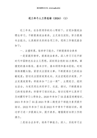 / 【七哥公文】2024年:近三年个人工作总结(2024)(1)+更多免费公文+VX:QiGeGongWen2024