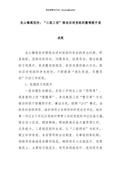 【七哥公文】2024年:龙山镇莲花村:“三抓三促”推动后进党组织整顿提升显成效+更多免费公文+VX:QiGeGongWen2024